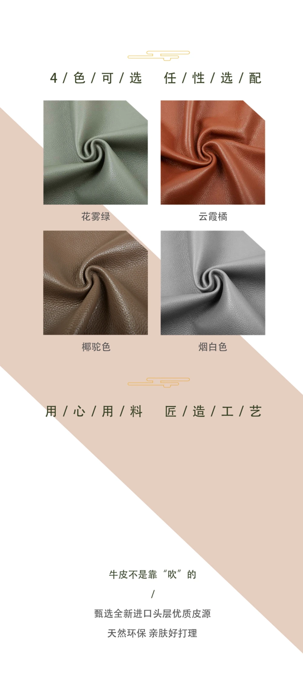 采用高端优质进口牛皮,带来高端、舒适的生活体验