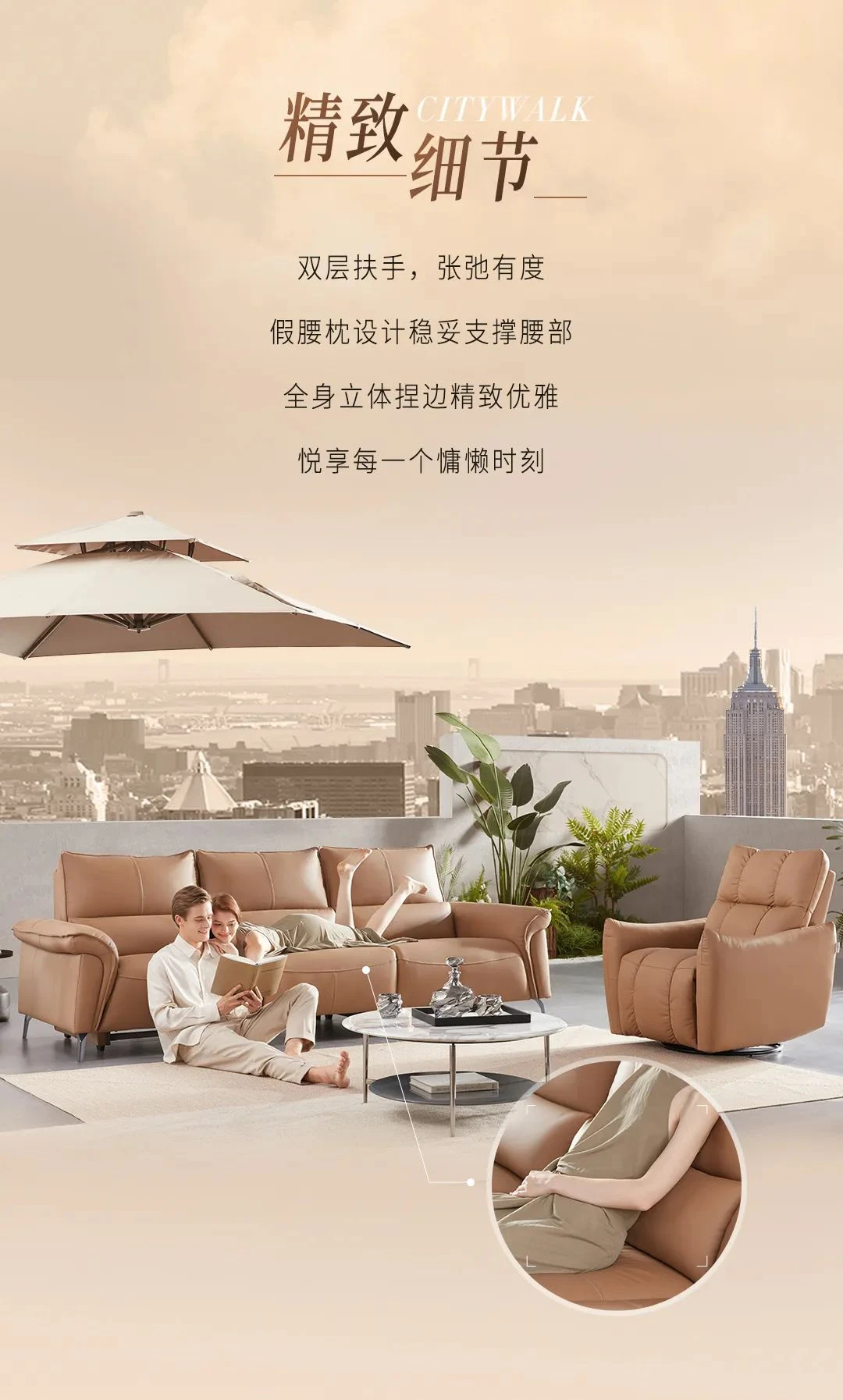 采用高端优质进口牛皮,带来高端、舒适的生活体验